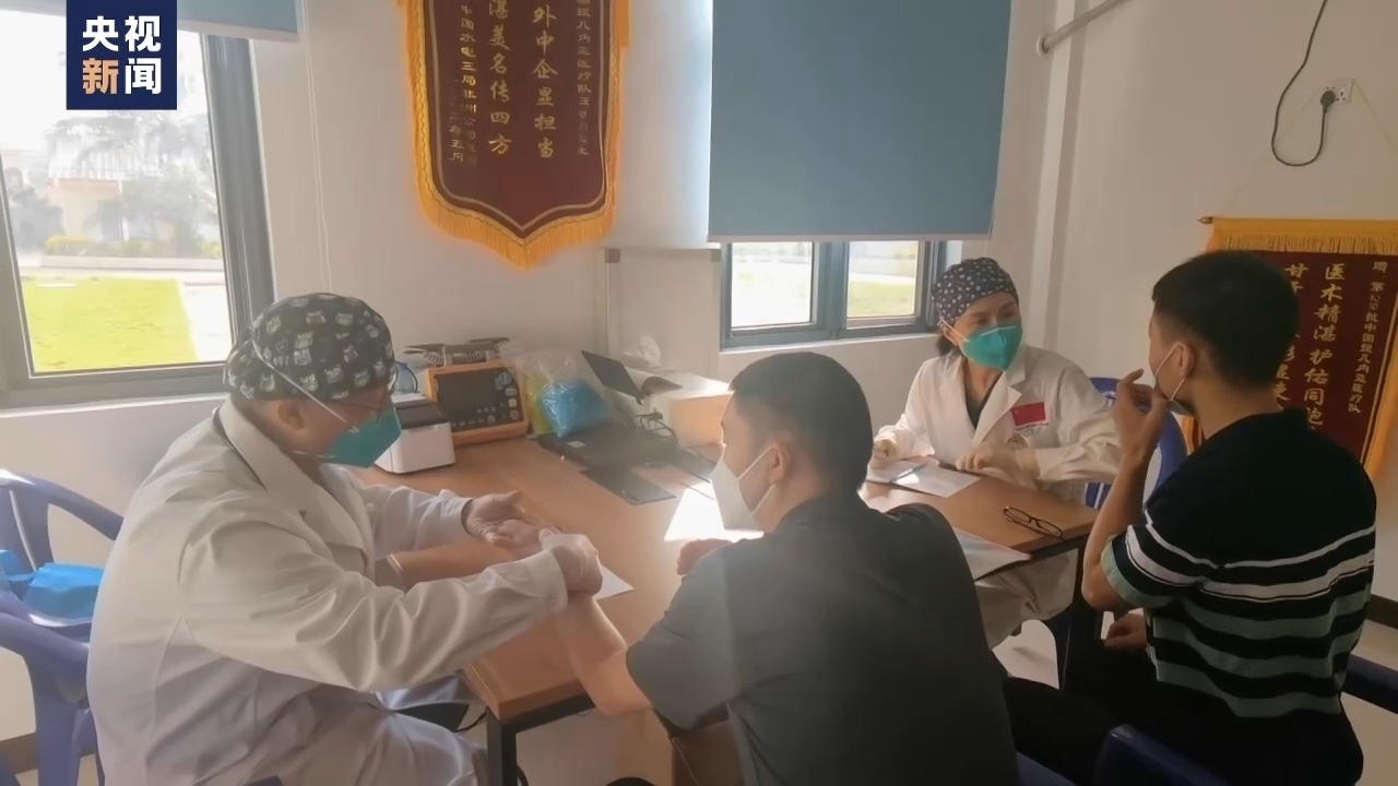 下午1時(shí),醫(yī)療隊(duì)駐地門診開始接診。