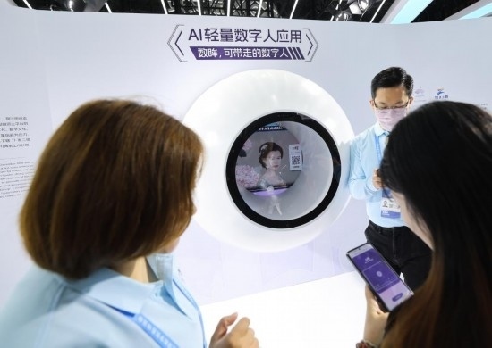 2023年11月23日,參觀者在第二屆全球數(shù)字貿(mào)易博覽會上體驗數(shù)字人應(yīng)用。新華社記者徐昱攝