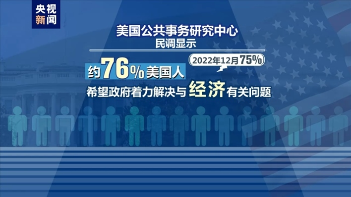 民調顯示,約76%的美國人希望政府著力解決與經(jīng)濟有關的問題,與2022年12月75%的占比相差無幾。約85%的共和黨人和65%的民主黨人把經(jīng)濟列為最優(yōu)先事項。民調還顯示,僅有5%的美國人“極其”或“非?!毙湃伟莸钦?。