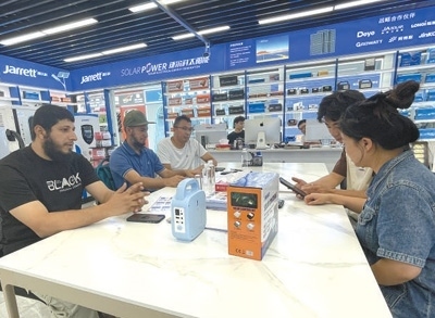 最近,埃馬紐埃爾又開(kāi)始關(guān)注新能源產(chǎn)品?!翱溌∫恍┑胤酱嬖陔娏Χ倘?、供電不穩(wěn)的問(wèn)題,很多當(dāng)?shù)厝讼M夷茉谥袊?guó)找到合適的產(chǎn)品?!睘榇耍涯繕?biāo)瞄準(zhǔn)了義烏國(guó)際商貿(mào)城的新能源產(chǎn)品市場(chǎng),尋找到一些適合喀麥隆的光伏設(shè)備?!爸袊?guó)的新能源產(chǎn)品性能可靠、性價(jià)比高,產(chǎn)品品類(lèi)覆蓋領(lǐng)域廣泛。”埃馬紐埃爾表示,大到醫(yī)療機(jī)構(gòu),小到禽畜養(yǎng)殖場(chǎng),中國(guó)光伏設(shè)備供應(yīng)的電力有助于滿足當(dāng)?shù)孛癖娚a(chǎn)生活的用電需求。