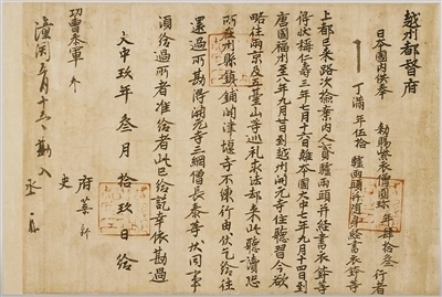 853年,圓珍入唐,先后在福州開元寺、天臺山國清寺、長安青龍寺等地修學。858年,圓珍攜大量經卷、法器等回到日本,被尊為三井寺第一代住持,并成為日本天臺宗寺門派創(chuàng)始人。在唐求法期間,圓珍與各界人士結下深厚友誼。圓珍的親身經歷以及他和唐朝人士的往來信件等,成為中日文化交流的歷史見證。