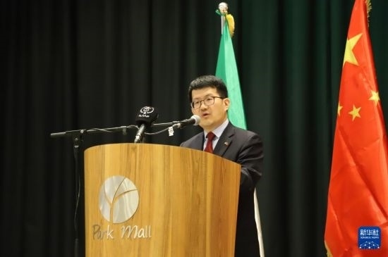 3月5日,在阿爾及利亞塞提夫,中國駐阿爾及利亞大使李健在論壇現場致辭。新華社記者 吳天雨 攝