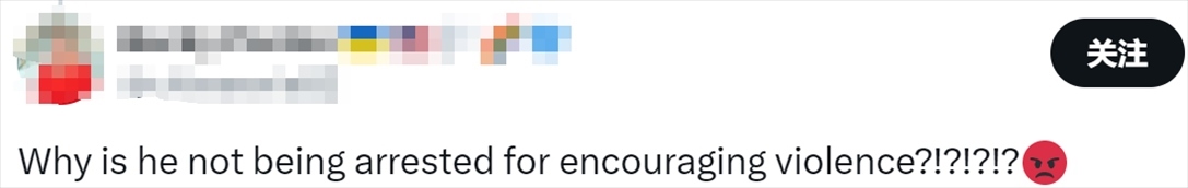 有人質(zhì)問:“為什么他(特朗普)不因鼓動暴力而被逮捕?!?!????”