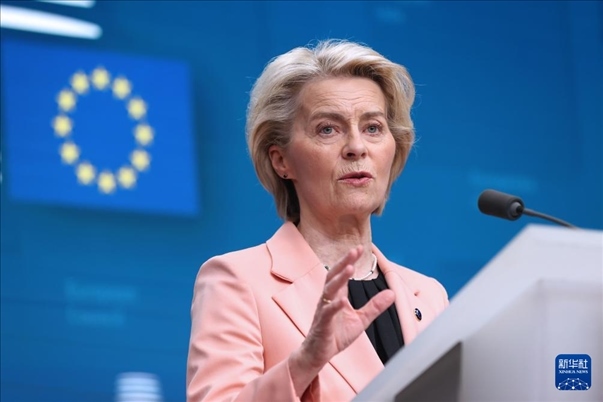 3月21日,在比利時(shí)布魯塞爾,歐盟委員會(huì)主席馮德萊恩在歐盟峰會(huì)期間出席新聞發(fā)布會(huì)。新華社記者 趙丁喆 攝