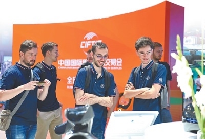 北京交通大學留學生在北京國家會議中心參觀2023年中國國際服務貿(mào)易交易會。胡慶明攝(影像中國)