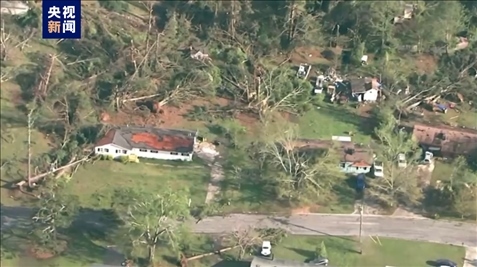 當(dāng)?shù)貢r(shí)間4月3日,美國佐治亞州羅克代爾縣遭遇龍卷風(fēng)襲擊。航拍畫面顯示,當(dāng)?shù)氐姆课莺蜆淠驹獾絿?yán)重破壞。