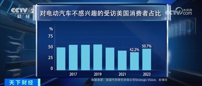 △一項(xiàng)針對25萬美國汽車消費(fèi)者的調(diào)查顯示,2023年對于購買和租賃電動汽車不感興趣的消費(fèi)者占比已經(jīng)超過了一半,達(dá)到了50.7%。