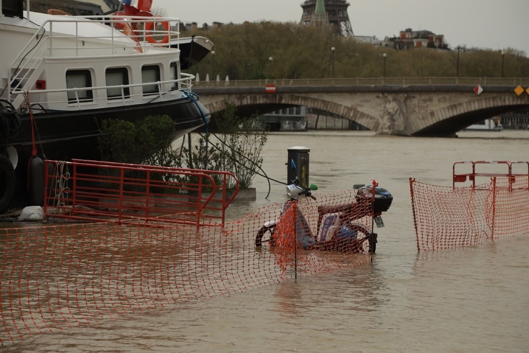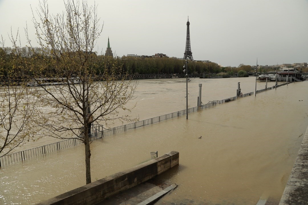 當?shù)貢r間2024年4月6日,法國巴黎洪水泛濫,塞納河水位上漲。
