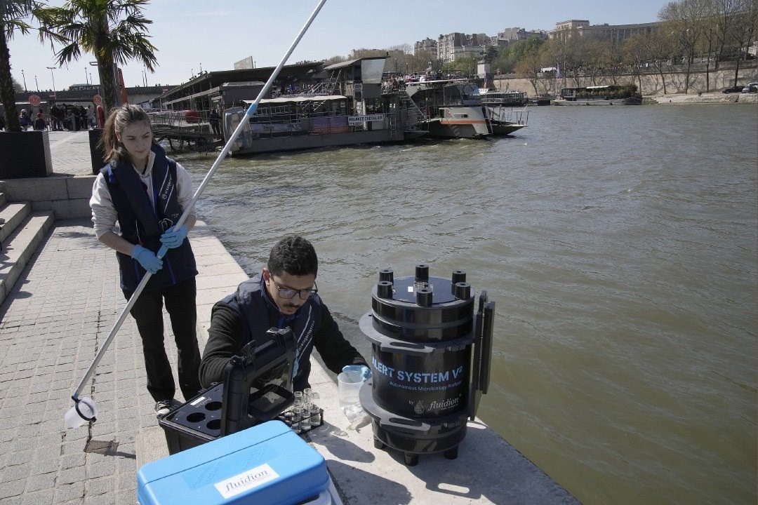 當?shù)貢r間2023年4月5日,法國巴黎,高級技術(shù)人員正在對塞納河水樣進行分析。