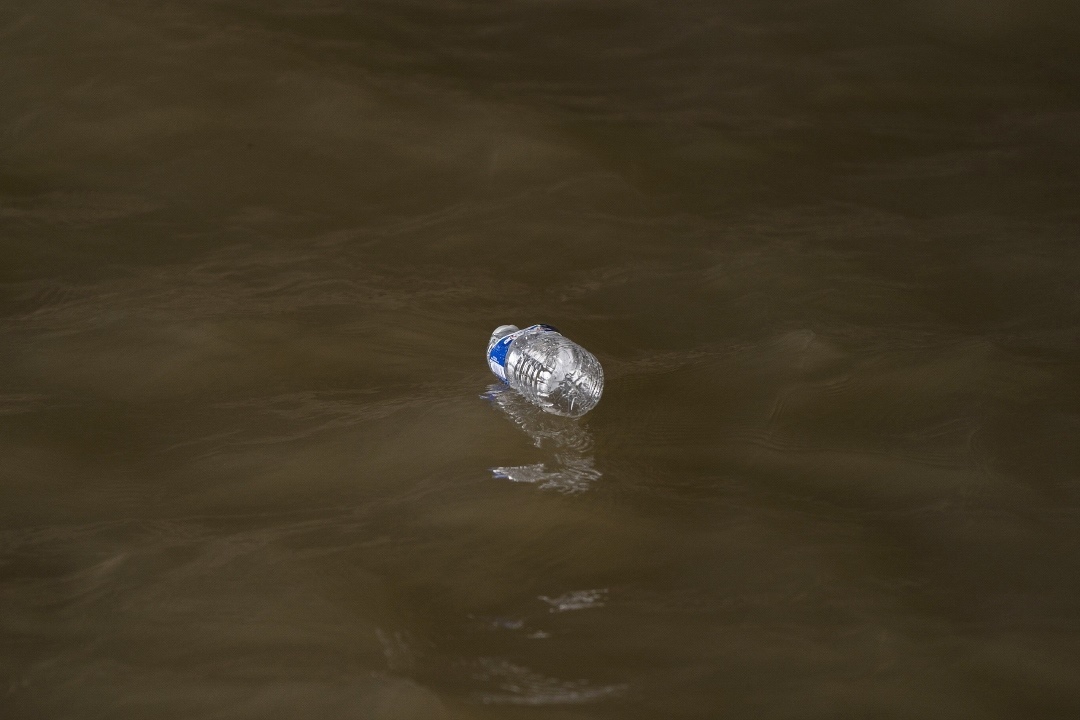 當?shù)貢r間2024年2月14日,法國巴黎,一個塑料水瓶漂浮在塞納河的水面上。