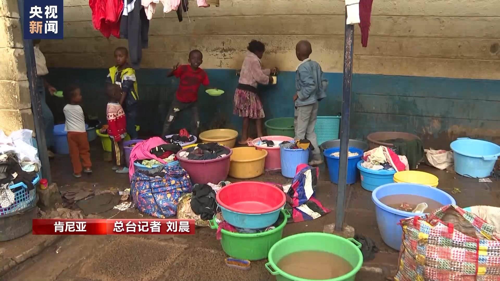 總臺(tái)記者 劉晨:這里是位于肯尼亞首都內(nèi)羅畢市中心馬薩雷貧民窟里的一所小學(xué),因?yàn)楹闉?zāi)失去住所的居民們被臨時(shí)安置在這里。由于暴雨影響,肯尼亞當(dāng)?shù)貙W(xué)校的開(kāi)學(xué)時(shí)間從本周又向后推遲了一周?,F(xiàn)在我身后這樣的教室已經(jīng)被改造成了臨時(shí)寢室,供災(zāi)民休息。政府送來(lái)了棉被和枕頭,每天也會(huì)定時(shí)為這里的難民提供食物。