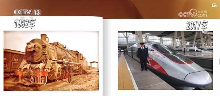 這張稍顯模糊的老照片是1992年,韓軍甲剛參加工作時拍下的。他身邊的蒸汽機車當時的運行時速一般只能開到50公里左右,這個風華正茂的年輕人從未設想過,20多年后的2017年,他能駕駛時速350公里的復興號列車。