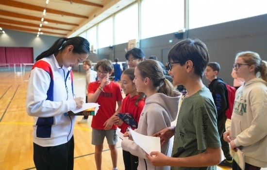 這是華東師大體育與健康學(xué)院院長季瀏教授帶隊的羽毛球世界冠軍團隊“與世界冠軍面對面——中法高校羽毛球友誼賽”活動的第七場。此前,他們在巴黎、里昂等地與法國國家體育中心、巴黎-西岱大學(xué)以及里昂部分大中小學(xué)開展了相關(guān)活動。