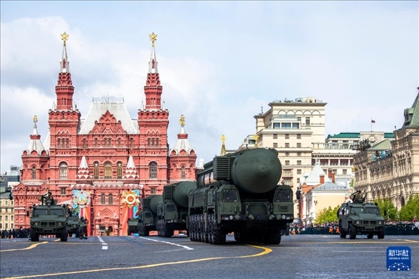 5月9日,在俄羅斯首都莫斯科,“亞爾斯”導(dǎo)彈系統(tǒng)編隊(duì)駛過紅場(chǎng)。新華社記者 曹陽 攝