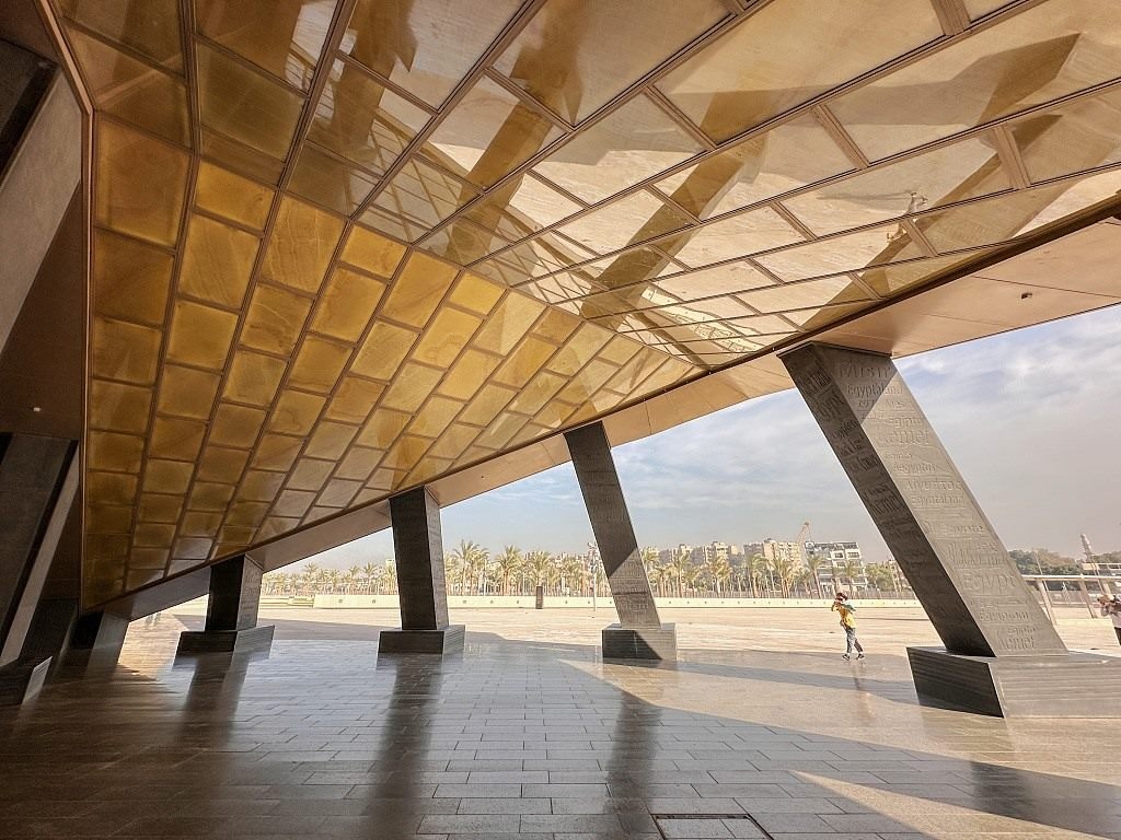 當?shù)貢r間2023年11月28日,大埃及博物館門口。