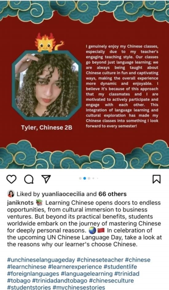 第十五個聯(lián)合國中文日和第五個“國際中文日”舉辦期間,中外語言交流合作中心與中國日報網(wǎng)聯(lián)合發(fā)起 “國際中文日”系列線上活動,鼓勵大家講述、分享與中文相遇的精彩故事,半個月內(nèi)活動參與者覆蓋全球五大洲近70個國家和地區(qū),包括英國、意大利、澳大利亞、美國、巴西、日本、韓國、泰國、老撾、迪拜、喀麥隆等,作品超2000件,閱讀量超1000萬,在中國和其他國家主流社交媒體平臺掀起“中文日”熱潮,吸引了海內(nèi)外網(wǎng)友的廣泛關注。