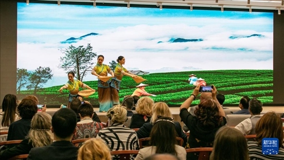 21日,中國駐美國大使館與湖北省文化和旅游廳、華盛頓美國華人博物館合作舉辦2024年度“茶和天下·雅集”活動。湖北省代表團與美國當?shù)夭杷噹熀献鳎故玖硕魇┯衤?、長盛川青磚茶和涇渭茯茶等多種茶葉的制作技藝,以及具代表性的茶葉產(chǎn)品、茶器和制茶工具,并現(xiàn)場表演茶藝。嘉賓們紛紛表示,活動讓他們充分領略到了中國茶文化的親和力和凝聚力。