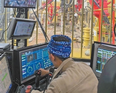 通過參與艾伯特湖區(qū)油田建設(shè),東方宏華還研發(fā)出“一鍵聯(lián)動”舉升式排管系統(tǒng),以舉升移運、多系統(tǒng)協(xié)同、離線作業(yè)、智能感知、一鍵集控五大技術(shù)為核心,實現(xiàn)在地面、臺面和高空三大區(qū)域的自動化作業(yè)?!坝辛宋覀冏灾餮邪l(fā)的智能系統(tǒng)加持,操作人員只需點擊屏幕,就可以完成接立柱和鉆井等操作?!睎|方宏華所屬宏華電氣副總經(jīng)理汪虹宇介紹。