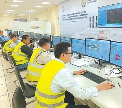 工作人員在錫爾河1500兆瓦燃氣聯(lián)合循環(huán)電站集控室監(jiān)控各設(shè)備工作狀態(tài)。李耀德攝