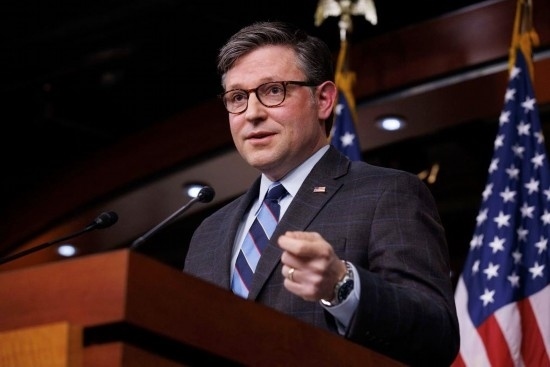 2月6日,在美國(guó)華盛頓,美國(guó)國(guó)會(huì)眾議院議長(zhǎng)邁克·約翰遜舉行記者會(huì)。新華社發(fā)(亞倫攝)