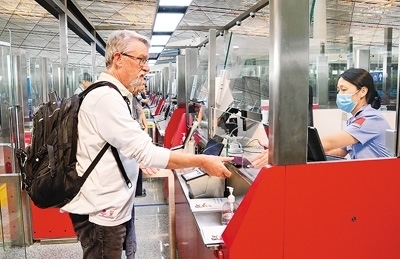 為了能讓外國(guó)旅客在入境第一站就體驗(yàn)到在中國(guó)旅游的便利,一系列免簽政策配套措施不斷創(chuàng)新完善——縮短候檢查驗(yàn)時(shí)間、自助填寫申報(bào)表、組建多語(yǔ)種志愿服務(wù)隊(duì)……各口岸邊檢部門傾力為出入境旅客提供優(yōu)質(zhì)、高效的通關(guān)服務(wù)。國(guó)際航線較多、外籍人員入境量較大的口岸均已開展口岸簽證業(yè)務(wù)。今年上半年,全國(guó)移民管理機(jī)構(gòu)簽發(fā)口岸簽證68.6萬(wàn)證次,同比上升267.9%。