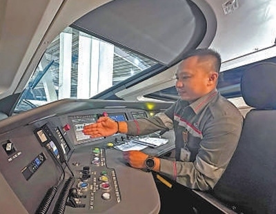 “操縱臺顯示屏、儀表顯示正?!薄案鏖_關(guān)按鈕、手柄位置正確”“鎖閉司機室門”“復(fù)檢作業(yè)完畢”……在印度尼西亞首都雅加達,一列雅萬高鐵動車組的駕駛室里,阿古斯正有條不紊地對駕駛設(shè)備一一檢查,他的中國師傅張躍在一旁指導(dǎo)。檢查完畢,清晨5時整,阿古斯駕駛列車緩緩駛出起點站哈利姆站。