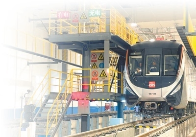 西安地鐵16號線全自動無人駕駛列車正在進行檢修。本報記者 張丹華攝
