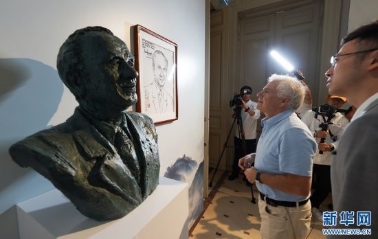 國(guó)際奧委會(huì)副主席、薩馬蘭奇體育發(fā)展基金會(huì)創(chuàng)始人胡安·安東尼奧·薩馬蘭奇到訪(fǎng)“中國(guó)之家”,參觀(guān)了袁熙坤的創(chuàng)作。