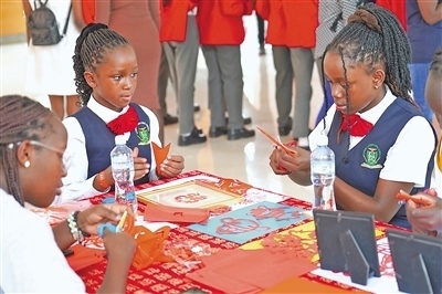 今年2月,在肯尼亞內(nèi)羅畢大學(xué)孔子學(xué)院舉辦的2024“歡樂春節(jié)之龍騰鼓躍鬧新春”活動(dòng)上,當(dāng)?shù)貙W(xué)生體驗(yàn)中國剪紙。本報(bào)記者 黃煒鑫攝