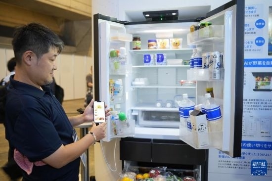 這是10月17日在日本千葉縣舉行的日本高新技術博覽會上拍攝的,日本松下公司展區(qū)搭載AI攝像頭的冰箱。新華社記者 錢錚 攝