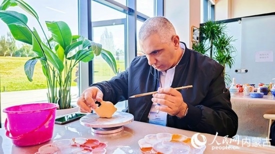 “今天是第一次體驗(yàn)?zāi)嗨埽诶蠋煹膸椭挛覀冏隽艘粋€(gè)碗,我覺得很有意思,我會(huì)把它帶回家鄉(xiāng),展示給我的朋友們?!卑<坝浾唏R贊·伊斯蘭姆完成了自己的第一個(gè)泥塑作品,成就感滿滿。呼和浩特雕塑藝術(shù)館的體驗(yàn)之旅也給他留下了深刻的印象,“呼和浩特有著豐富的歷史文化,很高興能有機(jī)會(huì)體驗(yàn)了解,我認(rèn)為這可以吸引很多游客來這里游覽。我們國家也有著豐富的歷史文化,我們兩國有很多共同點(diǎn),我覺得文化交流能推動(dòng)我們的合作關(guān)系邁向新的階段?!?/p>