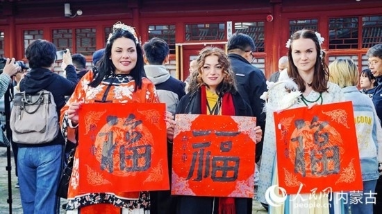 人民網(wǎng)呼和浩特10月23日電 (張聿修、孟佳澍、張雪冬、實習(xí)生朱昱晗)福“倒”了??!暗健绷耍[弄著手中的福字,了解到關(guān)于福字的寓意,塔吉克斯坦記者烏斯蒙·阿卜杜恰洪洛夫露出驚訝的表情,感嘆中國語言蘊含的智慧。