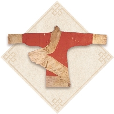 湖南長沙馬王堆一號墓出土朱紅菱紋羅絲綿袍,中原曲裾樣式代表。圖為德國考古研究院提供