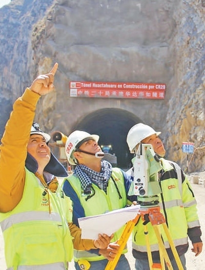 中秘建設(shè)者在中鐵二十局承建的秘魯安第斯國(guó)家公路施工現(xiàn)場(chǎng)。張 魏攝