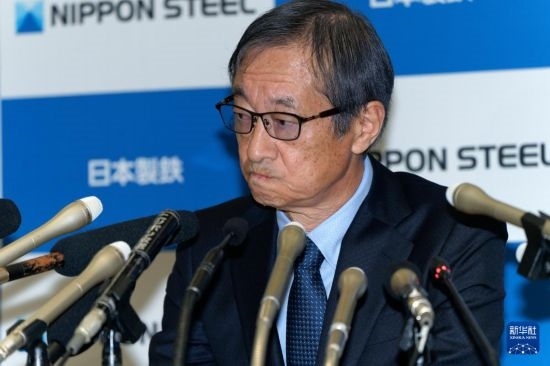 1月7日,在日本東京,日本制鐵公司會長兼首席執(zhí)行官橋本英二在記者會上發(fā)言。新華社記者 張笑宇 攝