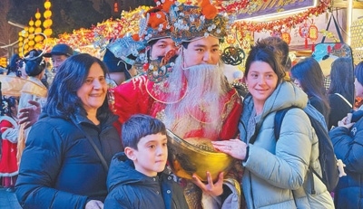 春節(jié)期間,外國(guó)游客在成都東門(mén)碼頭體驗(yàn)春節(jié)文化。