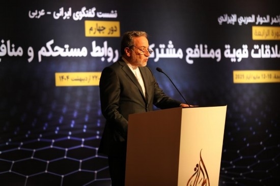 5月10日,伊朗外長(zhǎng)阿拉格齊在卡塔爾多哈出席第四屆阿拉伯-伊朗對(duì)話(huà)會(huì)議時(shí)講話(huà)。新華社發(fā)(主辦方供圖)