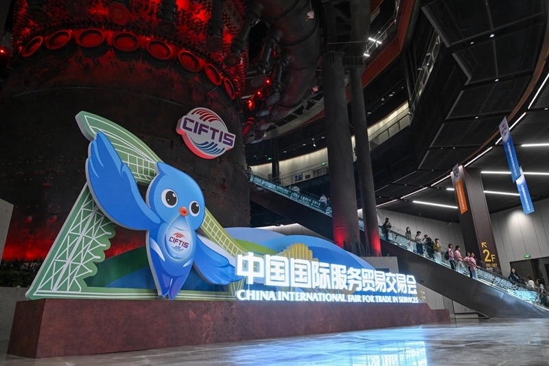 這是9月10日拍攝的2025年中國國際服務(wù)貿(mào)易交易會主題展區(qū)入口。