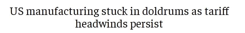 此外,印度《經(jīng)濟時報》2日發(fā)表題為《關稅阻力持續(xù)存在 美國制造業(yè)陷入低迷》的文章。文章指出,11月,美國制造業(yè)連續(xù)第九個月萎縮,工廠面臨訂單下滑和原材料價格上漲的雙重困境,進口關稅的拖累持續(xù)存在。