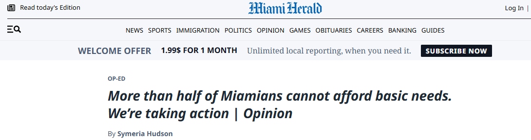文章表示,在邁阿密,現(xiàn)實令人清醒:戴德縣超過五十萬個家庭難以負擔住房、食品、醫(yī)療、托兒、交通和技術等必需品和服務。家庭收入與實際生活成本之間的差距持續(xù)擴大。西默里亞·哈德森在文中強調,這些挑戰(zhàn)并非抽象概念。當家庭被迫在支付房租和喂養(yǎng)孩子之間作出選擇時,這并非個人失敗,而是系統(tǒng)性問題。這需要企業(yè)領導者、政策制定者、教育者、醫(yī)療系統(tǒng)、非營利組織和普通公民共同努力。