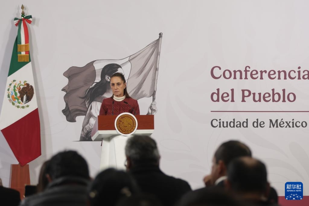 1月12日,墨西哥總統(tǒng)克勞迪婭·辛鮑姆在首都墨西哥城參加例行新聞發(fā)布會(huì)。新華社發(fā)(弗朗西斯科·卡涅多攝)