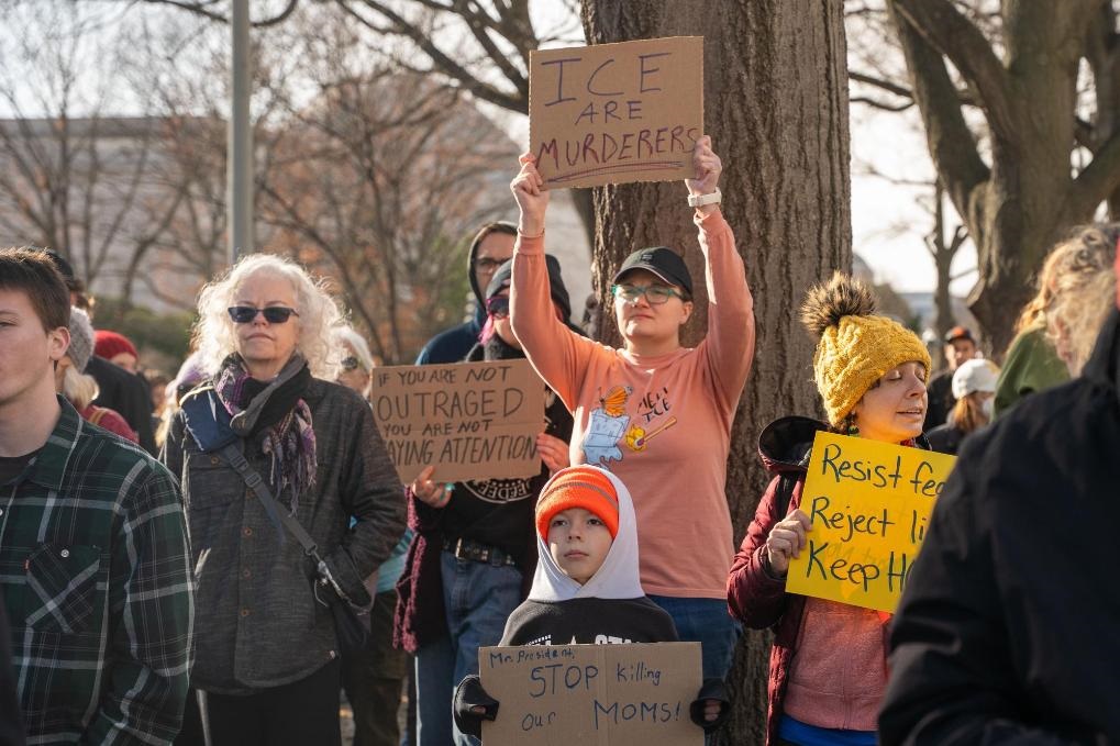 1月11日,在美國首都華盛頓,民眾抗議移民與海關執(zhí)法局暴力執(zhí)法。新華社發(fā)(李源清攝)