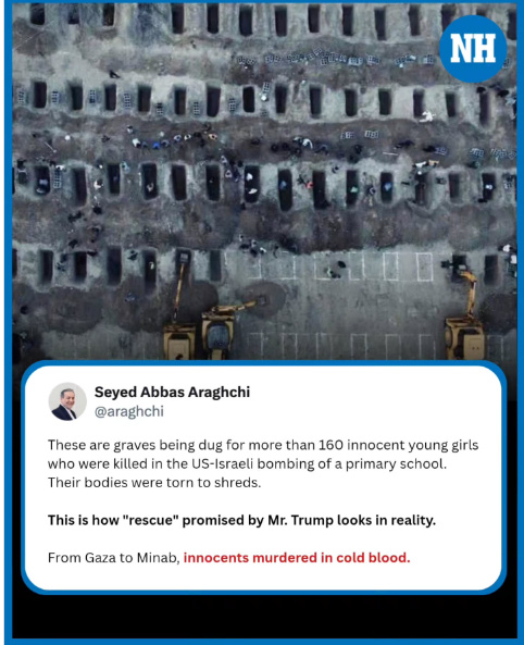 據(jù)報(bào)道,阿拉格齊在貼文中表示,“這些墳?zāi)梗菫榱寺裨嵩诿酪月?lián)合轟炸小學(xué)事件中遇難的160多名無辜女孩而挖的。她們的遺體支離破碎?!?/p>