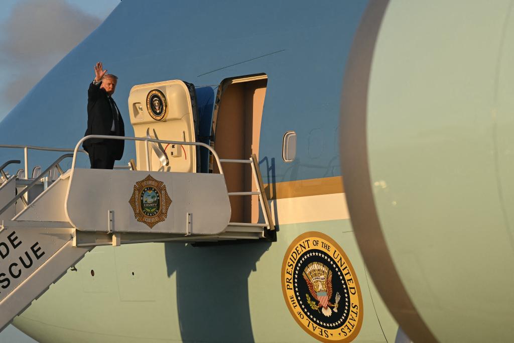 這是3月9日特朗普準(zhǔn)備登上總統(tǒng)專機,從佛羅里達(dá)州返回首都華盛頓。法新社圖片