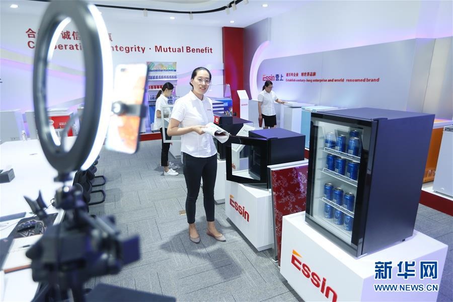 6月15日,在青島營上電器有限公司,營銷人員通過廣交會直播平臺推介出口到海外市場的冰箱。當(dāng)日,第127屆廣交會拉開帷幕。這是我國首次將廣交會整體性“搬上云端”。本屆廣交會會期10天,保持24小時不間斷,按16大類商品設(shè)置50個展區(qū),180萬件展品同期上線展示。新華社發(fā)(梁孝鵬攝)