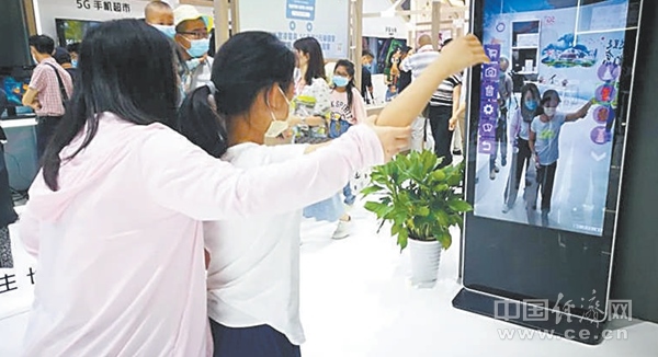 在中國聯(lián)通展臺,一款“AR試衣鏡”前不少人駐足體驗?!皠偛朋w驗了幾款裙子的試穿過程,挺好玩的!可以根據(jù)自己喜好選擇衣服,換衣服速度也很快!”剛帶著女兒體驗完“AR試衣鏡”的李靜興奮地說,站在“AR試衣鏡”屏幕前,可以實時看到衣服穿到身上的效果,揮一揮手就可以更換。