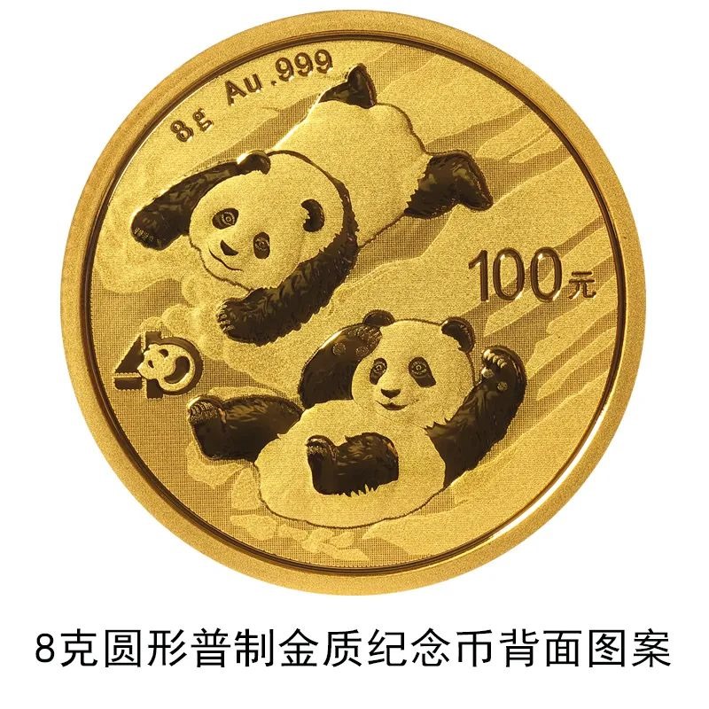 該套貴金屬紀(jì)念幣正面圖案均為北京天壇祈年殿,并刊國名、年號(hào);背面圖案均為大熊貓滑雪嬉戲場景,輔以“熊貓金幣發(fā)行40周年標(biāo)識(shí)”元素,并刊面額、重量及成色。