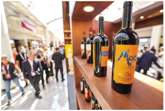 這是賀蘭山葡萄酒展銷會(huì)現(xiàn)場(chǎng)展示的寧夏葡萄酒(9月7日攝)。新華社記者馮開(kāi)華攝