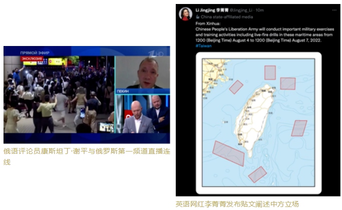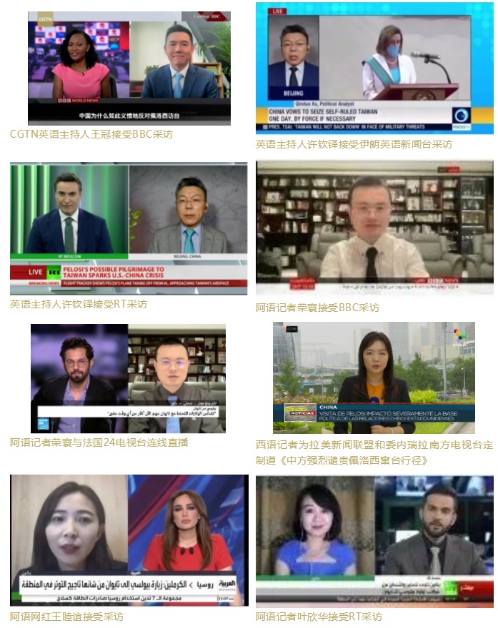 CGTN英、西、法、阿、俄等多語種主播、評論員和網(wǎng)紅積極在多家外媒發(fā)聲,接受了包括英國廣播公司(BBC)、今日俄羅斯(RT)、伊朗英語新聞臺(Press TV)、拉美新聞聯(lián)盟、貝寧E-TELE電視臺、法國24電視臺、沙特阿拉比亞電視臺以及以色列i24news電視臺等多家國際媒體的采訪連線,主動闡釋中方立場,分析佩洛西這一挑釁行徑背后的虛偽動因,揭批美國在臺灣問題上“說一套做一套”、侵犯中國的主權和領土完整的行為。