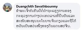 老撾黨中央機關報前總編輯、社長端吉·薩瓦本彌(Duangchith Savathbounmy)留言:“認同我的祖國對臺灣問題的表態(tài),支持一個中國原則,臺灣是中國不可分割的一部分?!?/p>